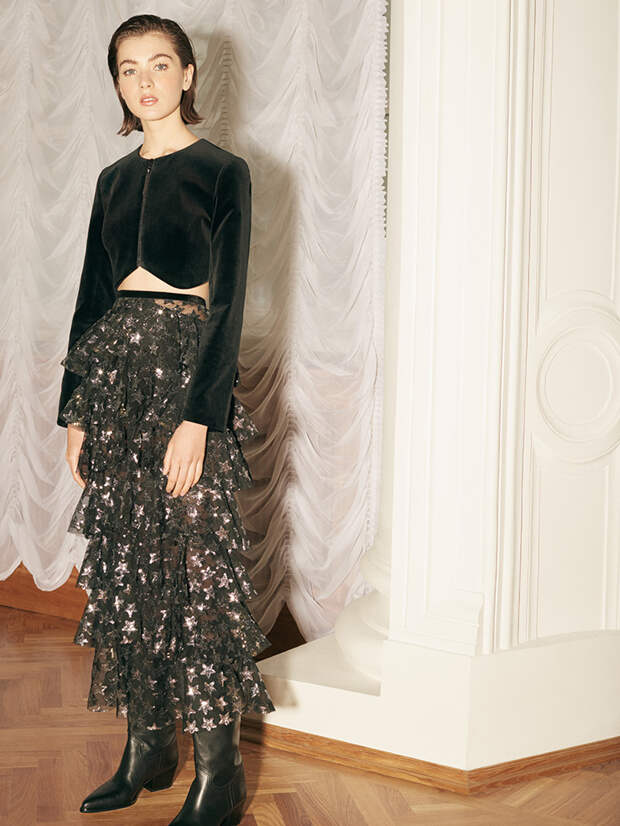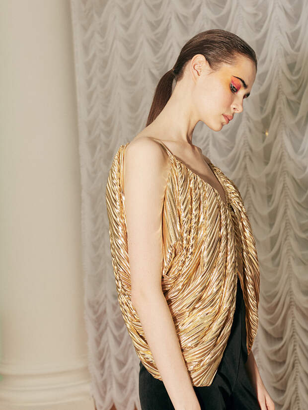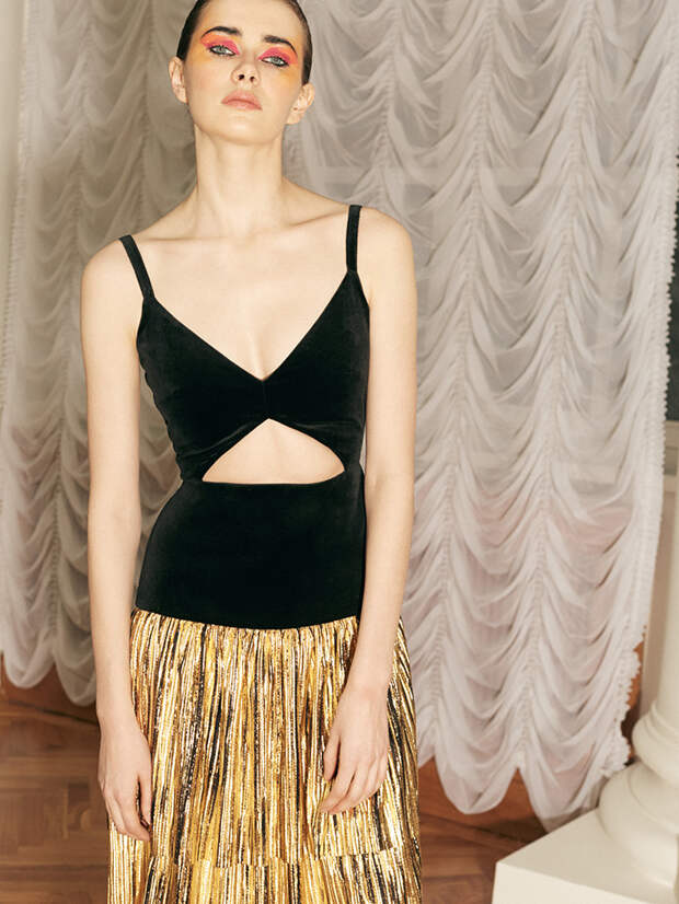 Грядущей осенью и следующей зимой дизайнер Юлия Калманович предлагает нам веселиться на богемных вечеринках в нарядах будто из золотой эпохи 80-х. Игривые мини из блестящей ткани, полупрозрачные платья с ручной вышивкой, топы будто из металла - эти вещи созданы восхищать и завораживать. Однако, несмотря на свою "броскость", новая коллекция вышла сдержанной с точки зрения цвета: здесь можно встретить лишь глубокий черный, переливающийся бронзовый и "богатый" золотой.