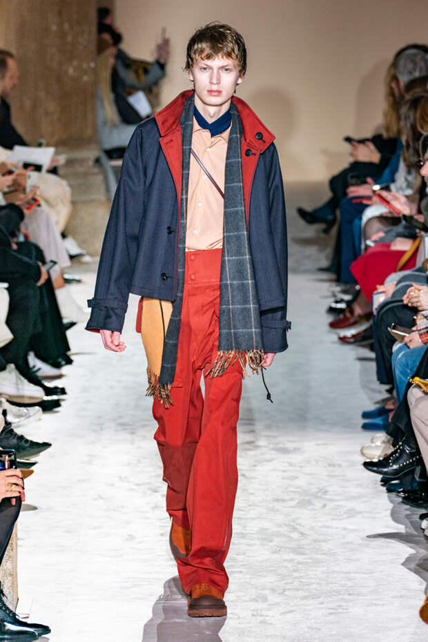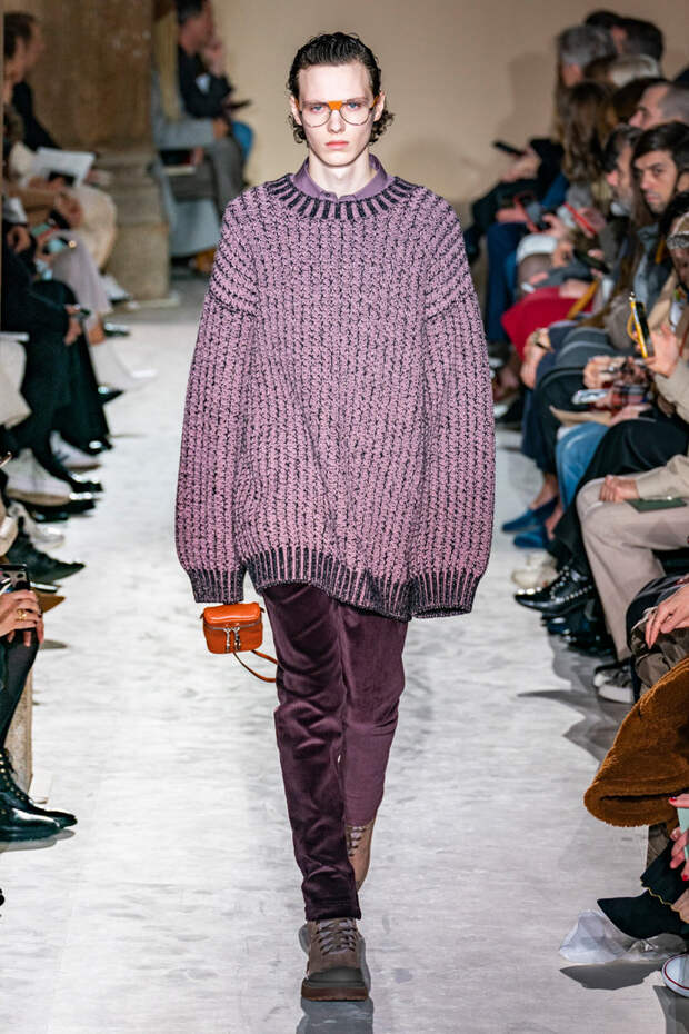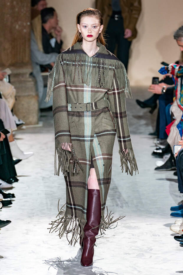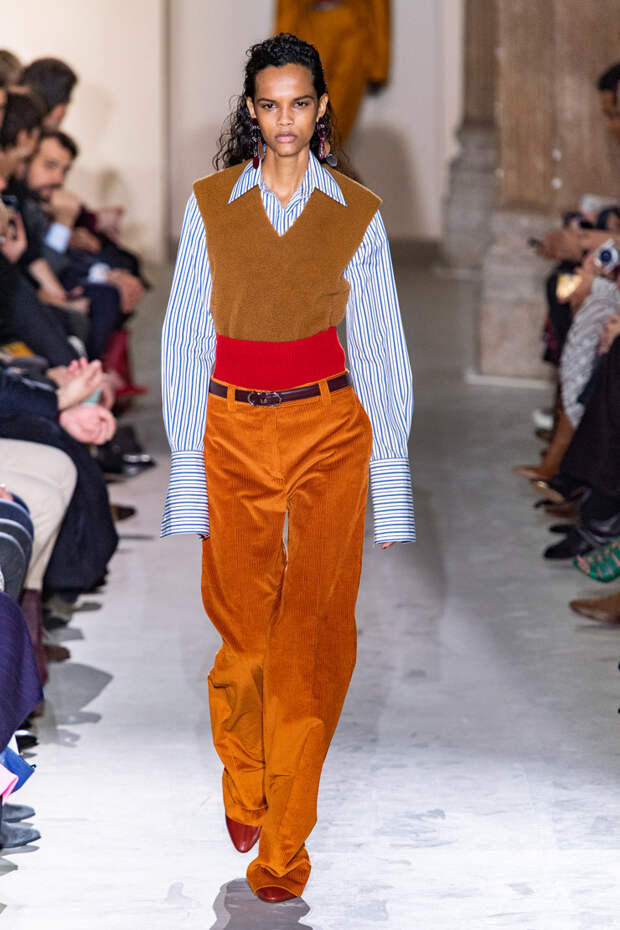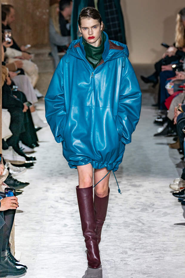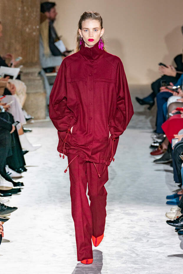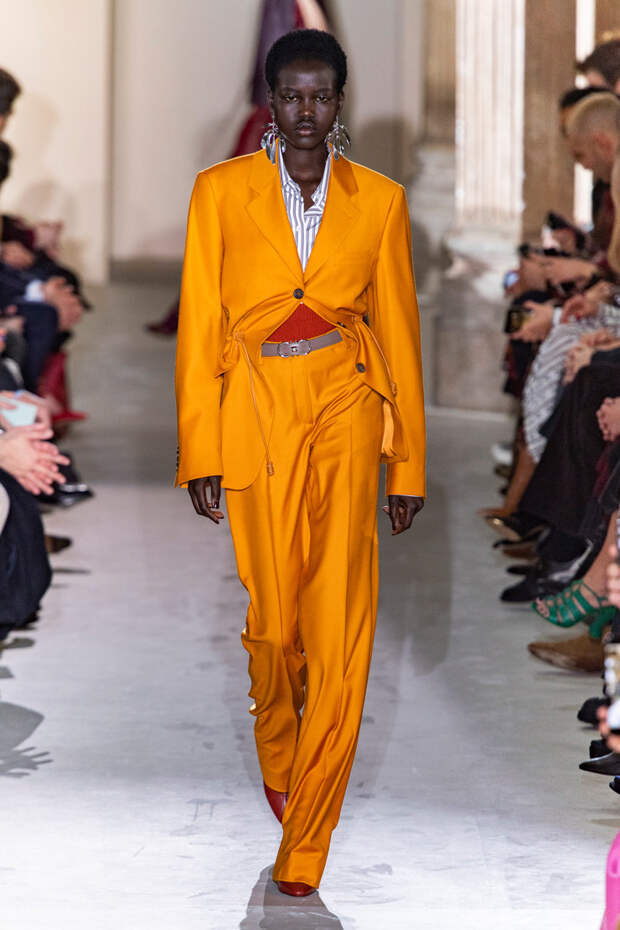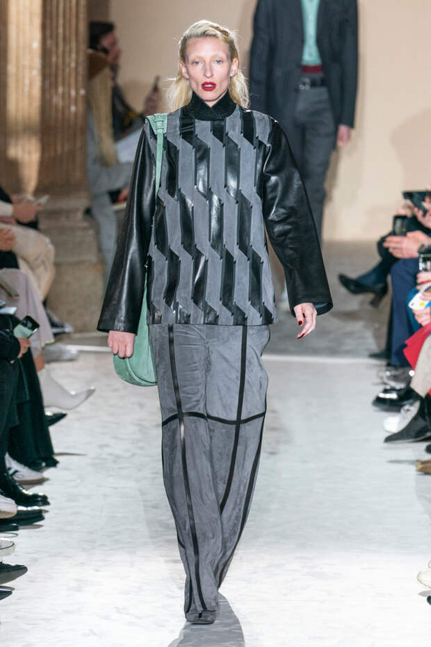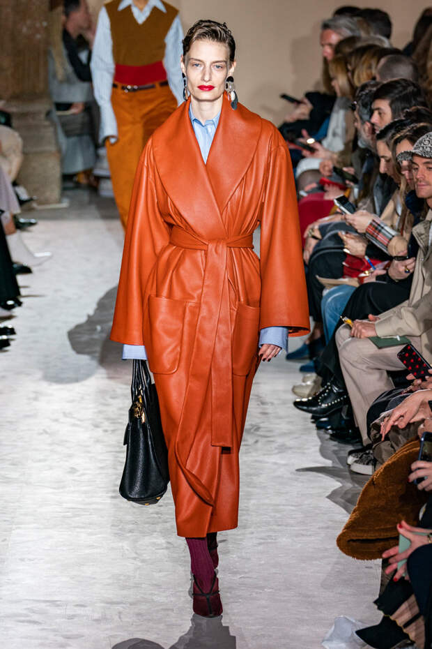 "Музами" дизайнера стали красочные замшевые босоножки на платформе 1942 года. Их расцветка и перенеслась в коллекцию — какие-то другие цвета он, конечно, добавил, но самой идее мы все равно обязаны босоножкам. Не было бы их — не было бы и голубого кожаного худи, и горчичных брючных костюмов, и винных байкерских штанов, и темно-зеленых пижам из кожи. Последние, конечно же, не для спальни, а для выходов в свет.В мужской половине, за дизайн которой отвечает другой дизайнер, Гийом Мейян, все было куда спокойней — и по цветам, и по самому набору вещей. Это даже хорошо: классика на то и классика, что хороша всегда.