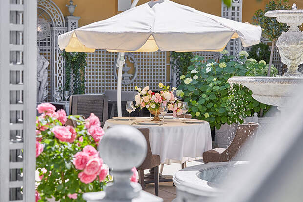 Когда я думаю об этой террасе с ее фонтанами, колоннами и арками, то всегда думаю о бокале Veuve Clicquot. Господи, а где еще, если не здесь!