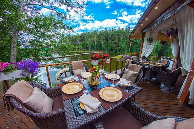 Оба ресторана открыты совместно с рыболовными клубами «Золотой Сазан», что означает, что в меню всегда есть свежевыловленная рыба, а у веранд красивый вид на воду.