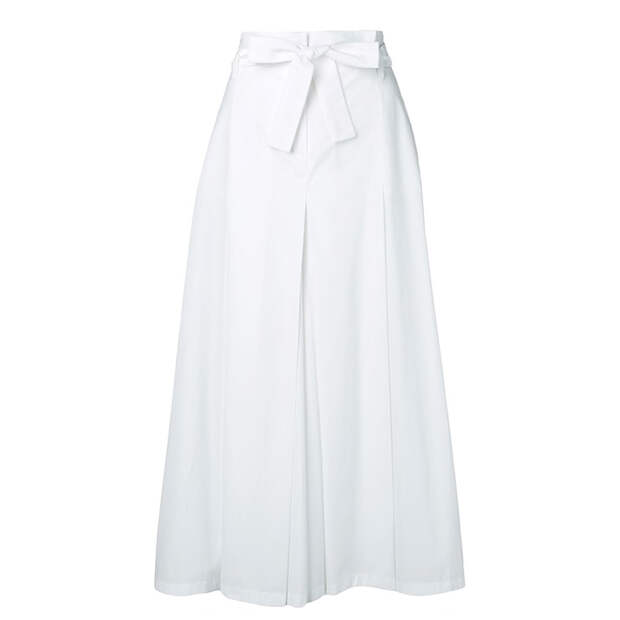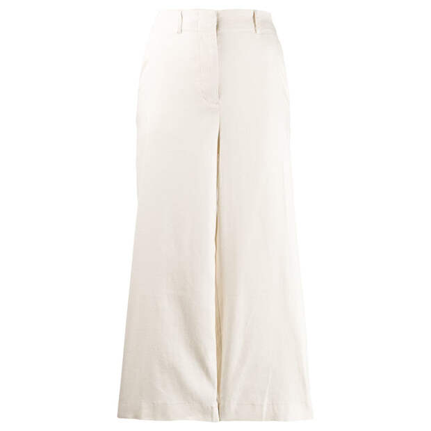 Кюлоты или укороченные палаццо - неважно: главное, чтобы брюки открывали щиколотки и совсем не прилегали к голеням. Вкупе с облегающим верхом такой низ поможет создать силуэт "песочные часы" и собрать все возможные комплименты.