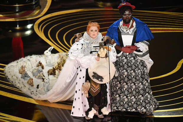 Одна из лучших комедийных актрис, Мелисса МакКарти, вручила награду за лучший дизайн костюмов в мантии с плюшевыми кроликами. Из-за ее костюма многие подумали, что победа достанется "Фаворитке" (героиня Оливии Колман, королева Анна, обожала кроликов — правда, каждый из них символизировал ее умерших детей), однако лучшей в этой номинации стала "Черная пантера".