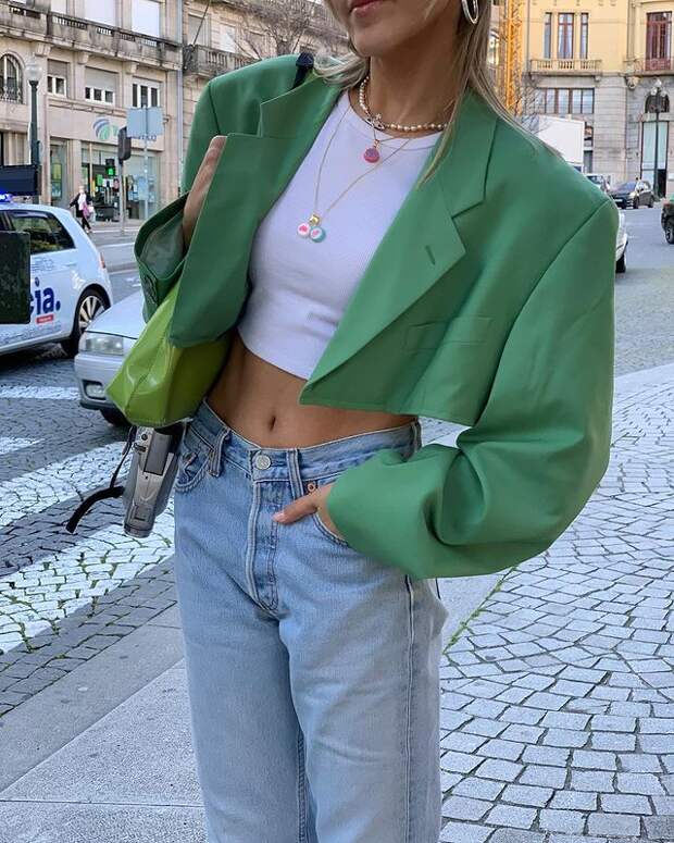 Да, короткие жакеты – комбинация двух актуальных трендов, все же дизайнеры придумали такую модель гораздо раньше. Так что вдохновляться можно не только образами современных модниц – попробуйте обратиться к винтажным коллекциям, а также фильмам и сериалам 1990-х.