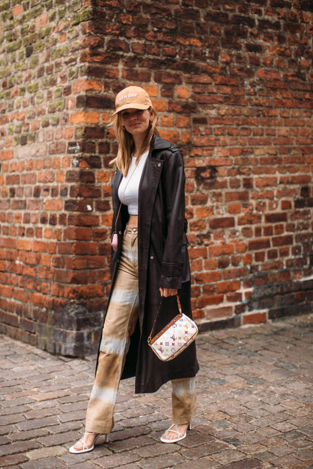 Очень сложно расстаться с бейсболками, к которым мы так привыкли за 2021 год. Впрочем, делать этого и не нужно, ведь в новых коллекциях нашлось место вельветовым, кашемировым и даже отделанным мехом головным уборам. Впрочем, впишется в осенний образ и привычная кепка в спортивном стиле. Нужно лишь объединить ее с базовым аутфитом, состоящим из брюк прямого кроя и кроп-топа. А чтобы не замерзнуть, дополните образ нейтральным кожаным тренчем.