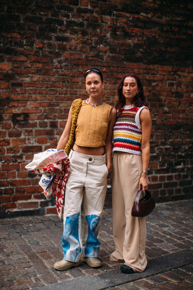 Кажется, этим летом яркий вязаный жилет успели примерить все фэшиониста. Для тех, кто приобрел эту ультрамодную вещь, есть хорошая новость: она не потеряет своей актуальности и в грядущем сезоне. Правда, носить жилет на голое тело вместо топа больше не стоит. Лучше наденьте его поверх трендового костюма-пижамы — например, от 12Storeez. Дополнить образ можно туфлями-слингбэками и клатчем Bottega Veneta.