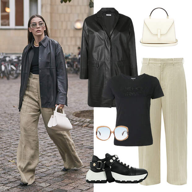 Футболка EMPORIO ARMANI, 5 231 руб.; брюки RAEY, 16 974 руб.; пальто P.A.R.O.S.H., 24 811 руб.;