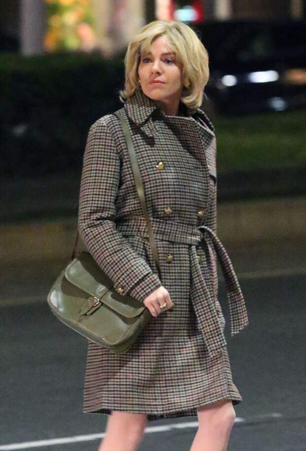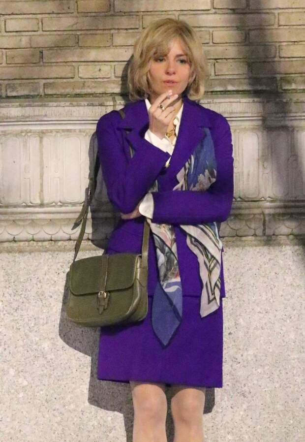 Сиенна Миллер все свое время посвящает съемкам в сериале «Самый громкий голос в комнате». На дня папарацци поймали актрису в Нью-Йорке, где звезда успела примерить на себя образ супруги главного героя. Актриса была в фиолетовом костюме с юбкой, белой рубашке и черных лодочках. В другой сцене стилисты добавили образу приталенное пальто в клетку.