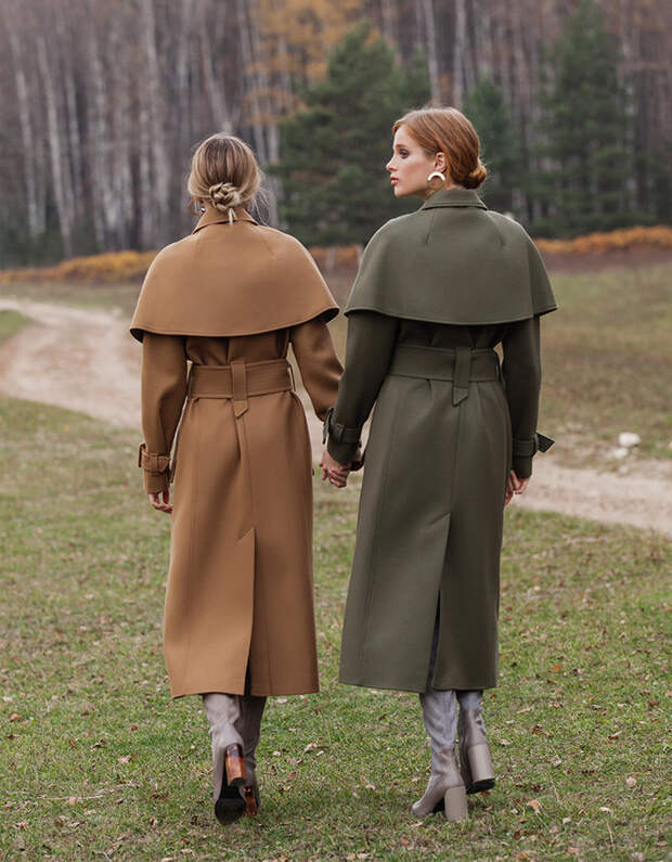 И не случайно: вдохновением для дизайнеров послужило творчество художника Виктора Васценова и прообраз «Аленушки». Поэтому модели на съемке будто слились с природой воедино. А кроме того, в пальто использованы элементы, которые добавляют им романтичности — это пелерина, погоны и крупные пуговицы. Все модели выполнены из итальянской шерсти, мериноса и эко-меха.