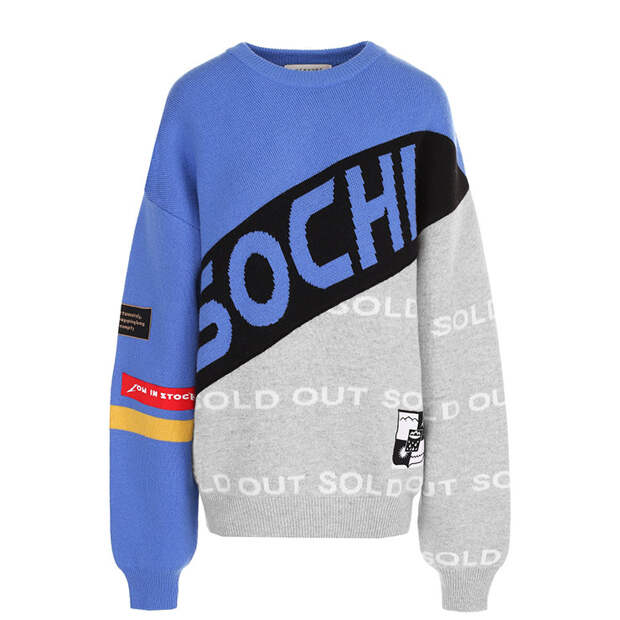 Центральный универмаг постоянно радует премьерами: на днях на 4 этаже открылся корнер марки Nervure. Ее креативный директор Андреа Биазини любит смешивать личные воспоминания с различными эпохами и стилями, но всегда оставляет место спорту. В его последнюю осенне-зимнюю коллекцию вошла специальная капсула, сделанная для ЦУМа. Пуловеры со спущенными рукавами украшены надписями Sochi, гербом города и голубым паттерном Sold out. Мастера Nervure связали модель в технике интарсии из мягкой шерсти с добавлением кашемира, отвечающего за тепло, и синтетических волокон, которые делают материал прочнее.