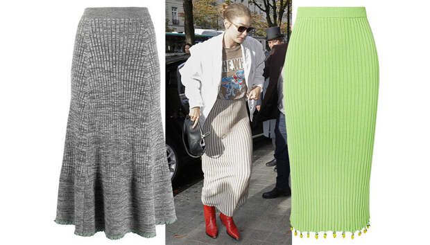 Осенне-зимний гардероб – это всегда компромисс между комфортом, теплом и красотой. Жертвовать никаким из этих пунктов не стоит. Если до наступления минусовой температуры хочется пощеголять в юбке, то отдавайте предпочтение трикотажу, как Джиджи Хадид, замеченная накануне в Париже. Модель дополнила ее курткой и красными контрастными ботильонами.
