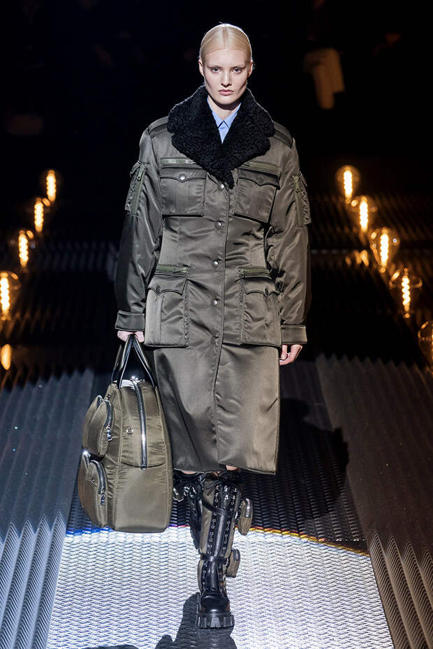 Достаточно серьезно обозначена милитари-тема, но в целом образы остаются очень женственными. Например, у Prada получилась такая темная романтика. Почти никто не использует мех, кроме Fendi - тут уже сложилось исторически, хотя меха в этом сезоне мало и у итальянского бренда. Общество почти убедили в том, что его можно и не использовать.