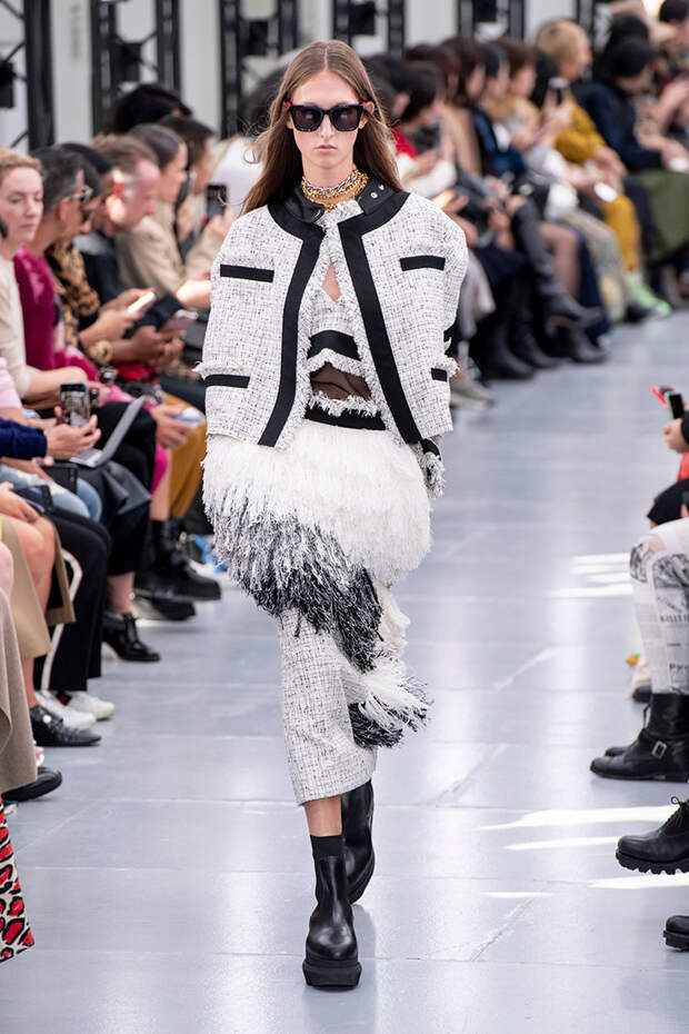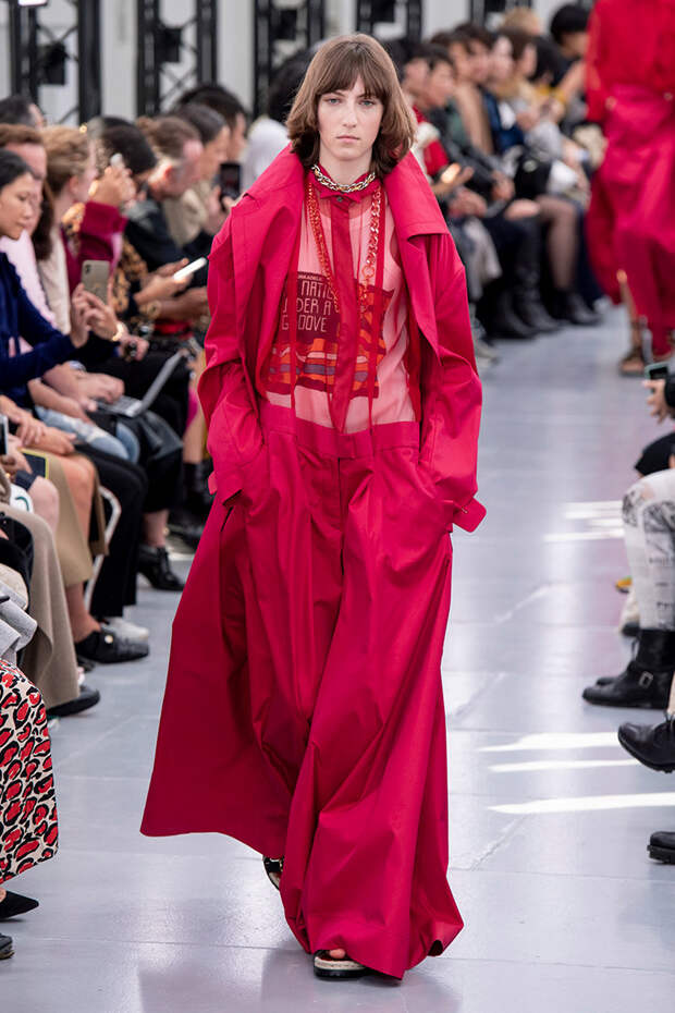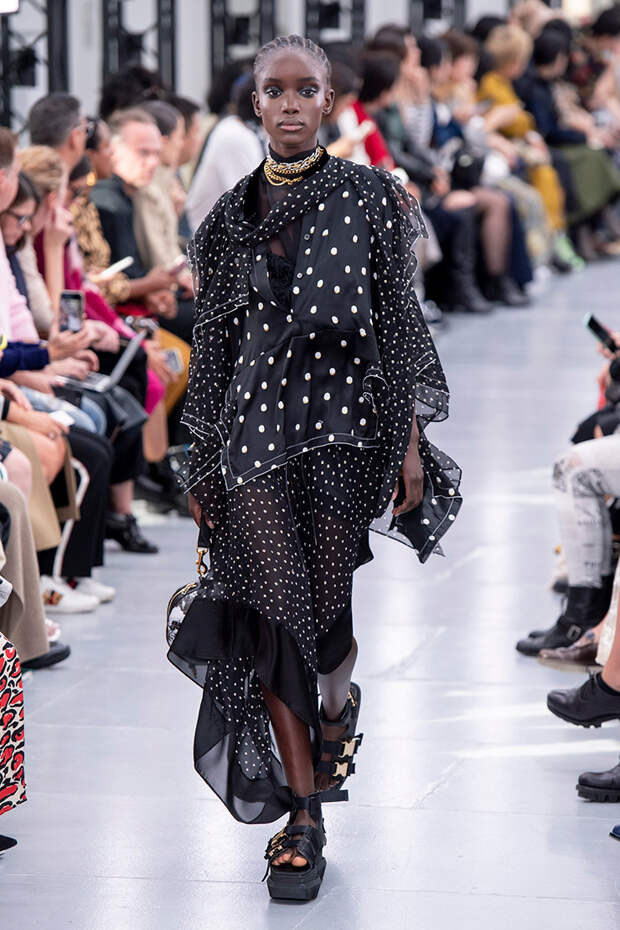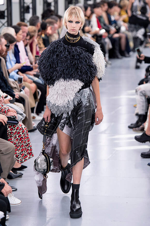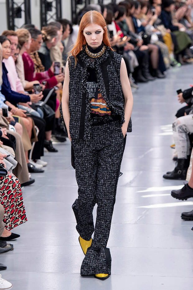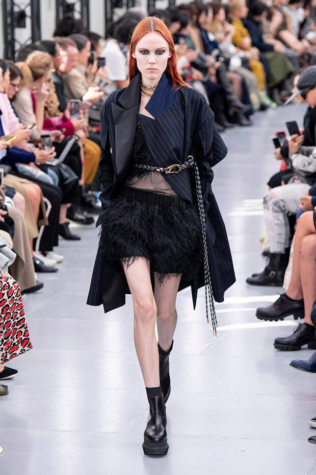 Не менее яркими получились и образы без принтов. Особенно нам понравились панковские выходы — с полупрозрачными мини, украшенными перьями, асимметричными объемными жакетами и толстыми цепями вместо поясов.