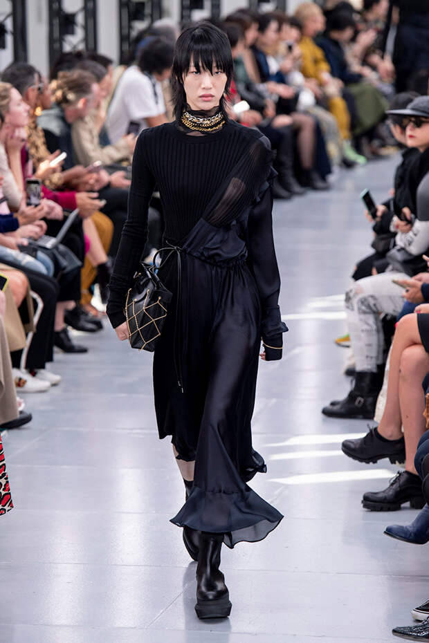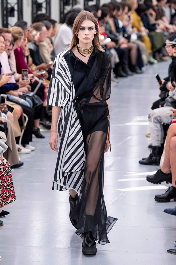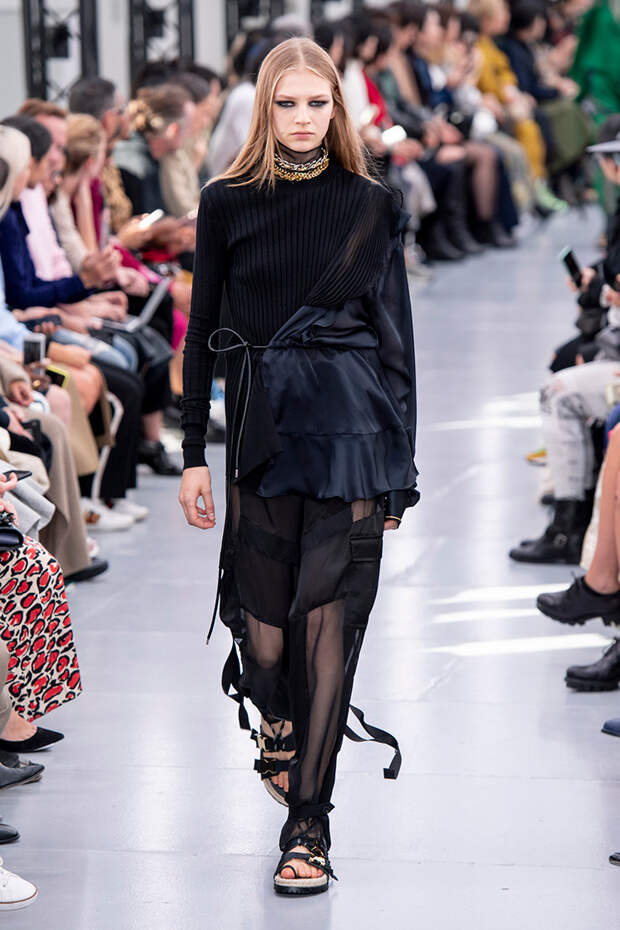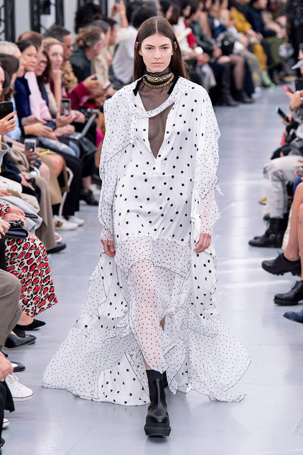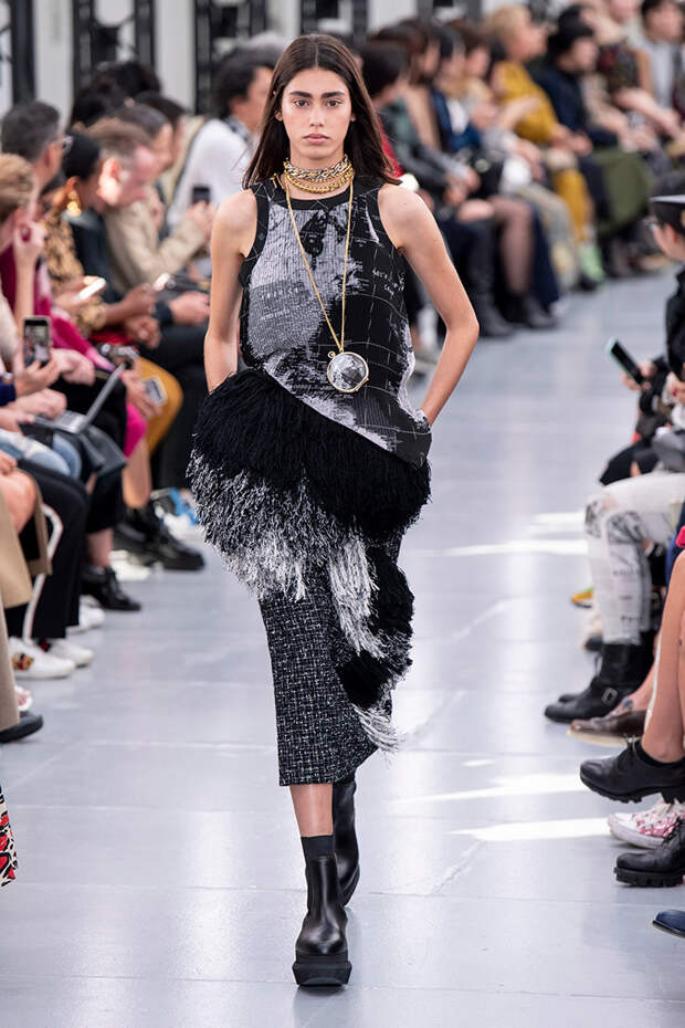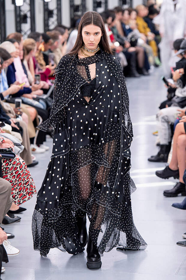 Не менее яркими получились и образы без принтов. Особенно нам понравились панковские выходы — с полупрозрачными мини, украшенными перьями, асимметричными объемными жакетами и толстыми цепями вместо поясов.