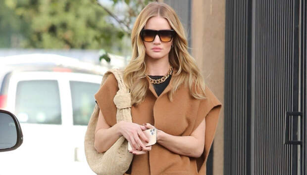 Роузи Хантингтон-Уайтли сбежала из холодного Лондона в солнечную Калифорнию, где можно себе позволить надеть что-то по легче пуховика. Воспользовавшись этим, модель составила ультрамодный образ, в котором отправилась в салон красоты в Беверли-Хиллз. Перед папарацци возлюбленная Джейсона Стэтхэма появилась в пальто без рукавов карамельного оттенка: его она надела с черным удлиненным топом и плотными колготками.