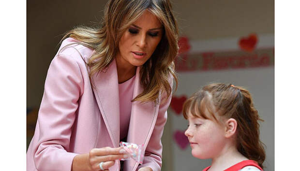 День святого Валентина Мелания Трамп провела не в компании супруга, а в компании тяжелобольных детей из госпиталя Children's Inn в Бетесду, штат Мэриленд. Вместе с маленькими пациентами первая леди погрузилась в атмосферу праздника - делала валентинки, украшала сладости. Романтичное настроение прослеживалось и в образе Мелании - она предпочла тотал-лук в главном цвете Дня всех влюбленных - розовом.