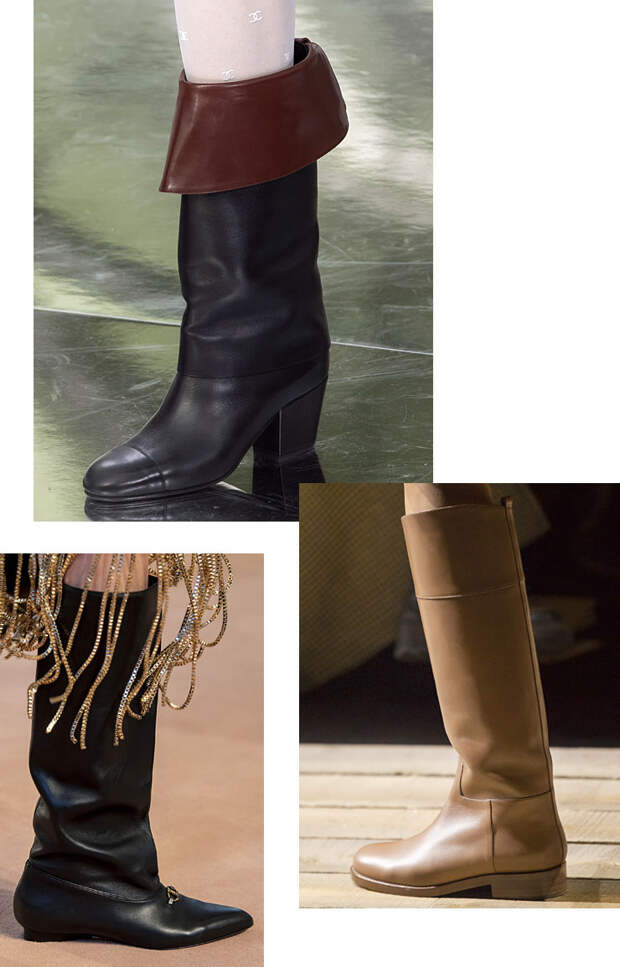 Ищете замену любимым казакам, чтобы и в новом сезоне быть на коне? Новая актуальная модель на смену ковбойским сапожкам — сапоги жокейские: лошади и верховая езда по-прежнему определяют актуальный стиль. Самое яркое доказательство — коллекция Chanel. Креативный директор Виржини Виар, рассказывая об источниках вдохновения, показала архивный снимок Карла Лагерфельда и Анны Пьяджи из 70-х. На фотографии дизайнер одет в жокейские сапоги с отворотами — такие же появились и в новой коллекции.