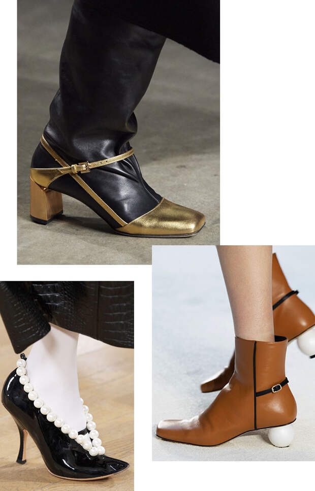 Стразы, перья, жемчуга, бахрома — все это не лучшие варианты для уличной обуви осеннего сезона. А вот туфли на выход нужны именно такие: нарядные и эффектно украшенные. Эффект “дорого-богато” не обязателен: нам, например, нравятся относительно минималистичные варианты JW Anderson и Ports 1961. Идеальной основой для всех украшательств, кстати, считаются в этом сезоне туфли Mary Jane — с перемычкой.