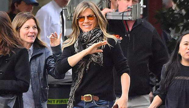 Дженнифер Энистон совместно с Риз Уизерспун снимается в новом драматическом сериале The Morning Show специально для Apple TV+. Теперь папарацци все чаще видят актрису на съемочной площадке, и даже на бэкстейдже знаменитость всегда выглядит отлично.