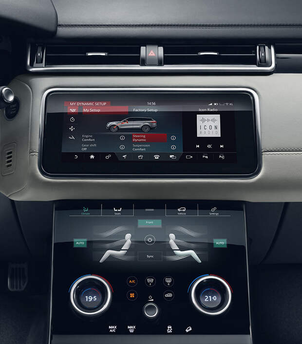 Она получила виртуальную панель инструментов диагональю 12,3 дюйма, систему бесключевого доступа и электропривод двери багажного отделения, а также аудиосистему Meridian мощностью 380 Вт с 11 динамиками. Как и все модификации Velar, спецверсия оснащена мультимедийной системой Touch Pro Duo с двумя 10-дюймовыми HD-дисплеями.