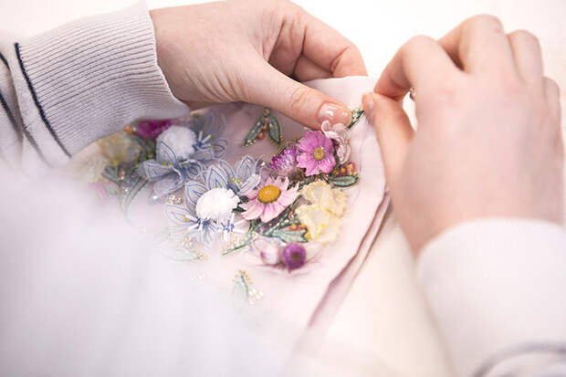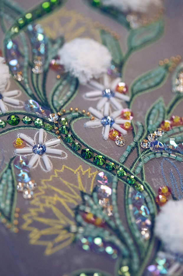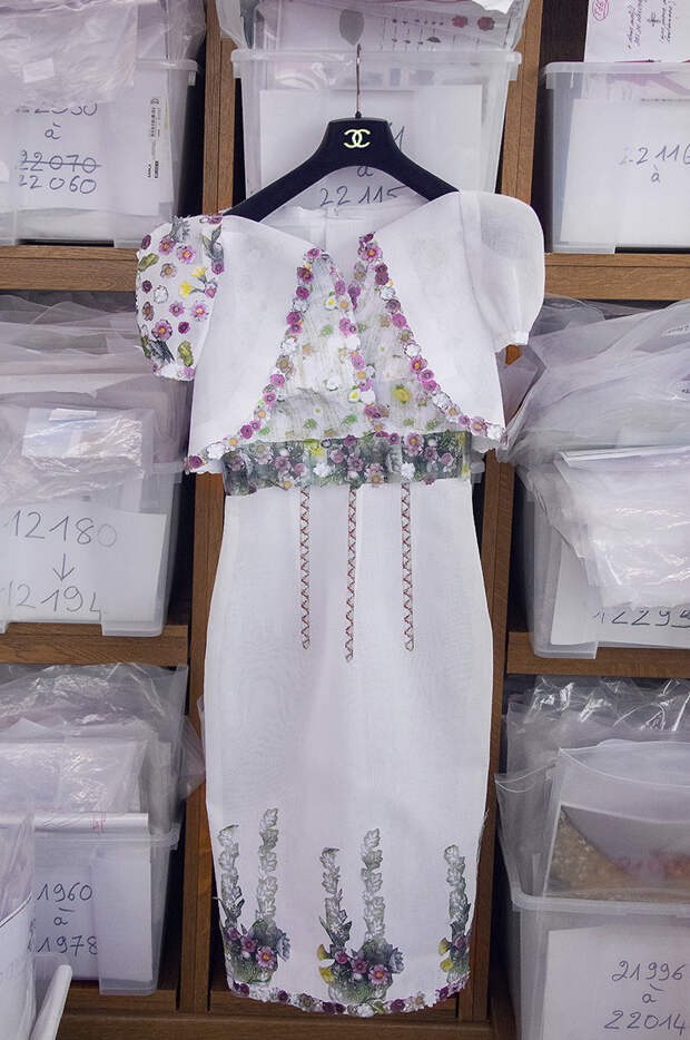 Традиционно финальная примерка проходит в ночь перед шоу, прямо на подиуме. Все детали: платье, ювелирные украшения, обувь, шляпки и перчатки - наконец-то складываются в полноценные образы и оживают, чтобы клиенты на следующий день смогли их примерить в ателье. Разумеется, по предварительной записи и только в присутствии главной швеи.