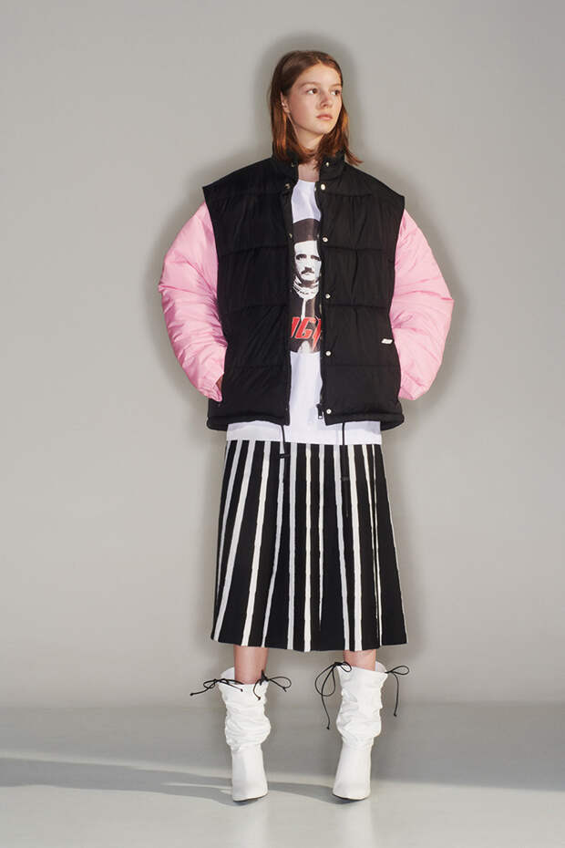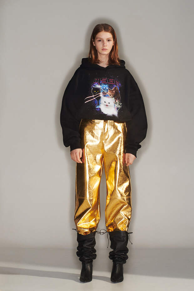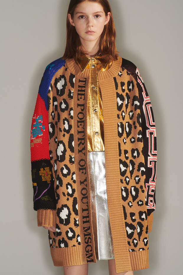 Основатель марки MSGM Массимо Джорджетти решил воспеть молодость и индивидуализм, о чем говорит игра слов в названии новой коллекции — Poetry of YOUth (поэзия юности, в которой скрыто еще одно слово — ты). Подобно Balenciaga и Versace, итальянский дизайнер воссоздал все популярные сегодня детали — фанатские шарфы, "университетские" джемперы, футболки с изображением котиков, спортивные костюмы и бомберы с символикой в духе американских колледжей, металлизированные юбки, леопардовый пуховик и многое другое.