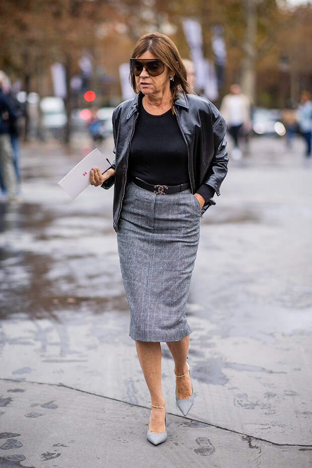 Юбки миди, в том числе силуэта карандаш, смотрятся очень женственно и одновременно строго, но некоторые окружающие предпочитают замечать лишь первое. Образ стоит сделать более расслабленным — тогда он будет выглядеть независимым от дресс-кода и не соответствовать стереотипам о типично "женской" офисной одежде. В этом помогут свободные куртки, бомберы, косухи и другая "лихая" верхняя одежда.