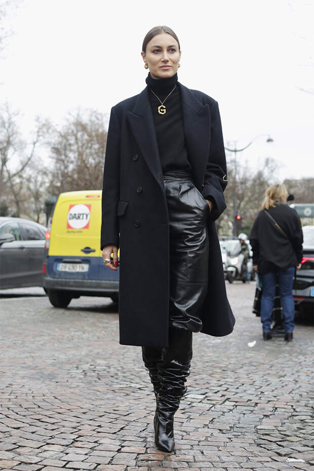Черные вещи в сочетании друг с другом могут смотреться несколько агрессивно. Если выбирать женственные силуэты и добавить пару роковых деталей (лаковую обувь, кожаную верхнюю одежду, золотые украшения), то агрессивность сыграет на руку. Наряд отразит вашу решительность, любовь к порядку и умеренность. А кроме того, отличное чувство стиля.