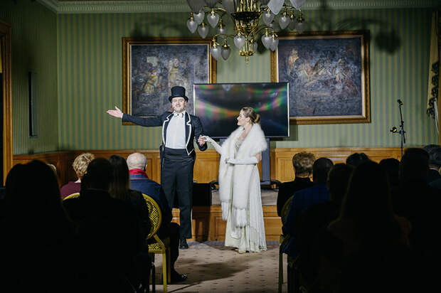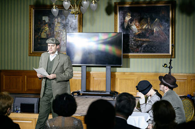 В залах «Суздаль» и «Кострома» с чарующим видом на Красную площадь хозяева вечера накрыли праздничный фуршет, а приглашенные актеры московских театров в форме интерактивного спектакля проводили гостей в зал «Московский», где и прошла основаная часть мероприятия.