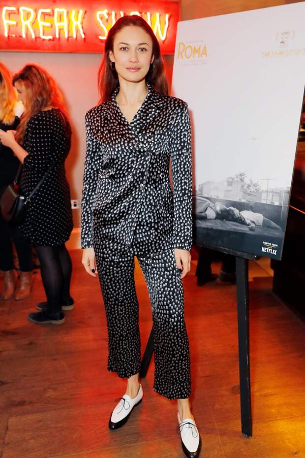 В такую снежную и промозглую погоду так не хочется выбираться из дома из-под теплого одеяла. Видимо, Ольга Куриленко тоже не слишком готова была расстаться с любимой пижамой и выбрала костюм в пижамном стиле, чтобы посетить показ фильма "Рим" с участием его создателя — режиссера Альфонсо Куарона.
