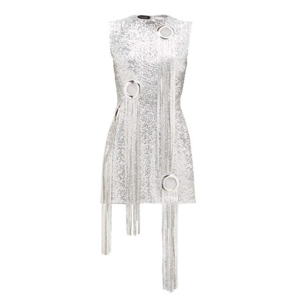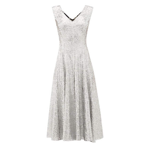 Тем, кто предпочитает другую цветовую палитру, советуем дополнить лук серебряными аксессуарами: это могут быть аккуратный клатч, сверкающие серебром туфли, массивные серьги, колье или же элегантная серебряная брошь.