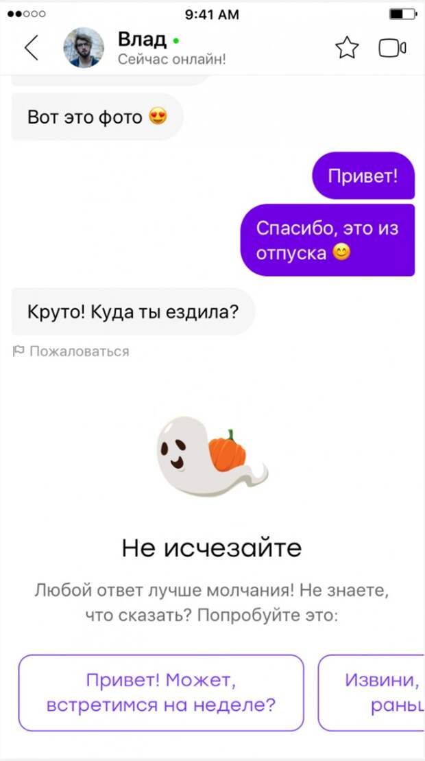Символично в канун Хеллоуина дейтинг-сервис решил объявить о запуске новой функции, которая будет бороться с привидениями в сети. После трех дней молчания в чате пользователь, который "гостит" собеседника, получит напоминание и несколько вариантов ответа на сообщение, например: «Привет, прости за молчание! Когда у тебя будет время встретиться?» — а тем, кто не хочет продолжать общение, Badoo подскажет пару способов вежливо написать об этом: «Привет! Ты классный, но я не вижу нас вместе». Функцию «Антигостинг» протестируют в конце этого года и запустят уже в начале 2019.