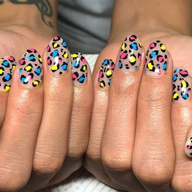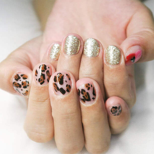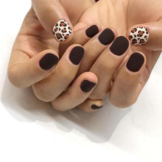 Леопардовый принт захватил не только подиумы, но и маникюрные салоны. Если вам покажется это перебором, можно украсить пятнистым рисунком только пару ногтей на каждой руке. С другой стороны, варианты с прозрачным "фоном" смотрятся вполне сдержанно.