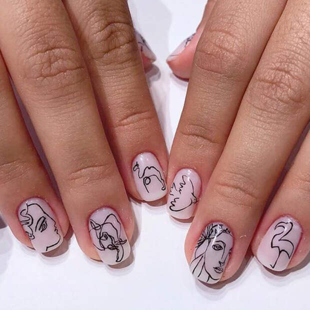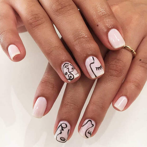 Возможно, не каждый маникюрный мастер сможет детально повторить какое-нибудь лицо, но суть такого маникюра и не в этом. Больше востребованы абстрактные лица, которые имеют лишь примерные очертания.