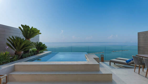 Центром AMARA является панорамный бассейн, окруженный зеленым садом. Вокруг — 207 номеров, откуда открывается вид на море. Для желающих остаться наедине друг с другом и пейзажем поодаль расположились бунгало с личными террасами и бассейнами. Самый заманчивый лот AMARA — люкс на крыше, предназначенный только для взрослых постояльцев.