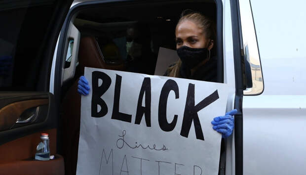 Дженнифер Лопес и Алекс Родригес поддержали протестующих в Голливуде: в колонне двигалось более 20 тысяч людей. Влюбленные выразили свою активную гражданскую позицию с плакатами в руках. Певица и ее жених оделись в парные образы и не забыли о защитных масках. Эти аксессуары нового времени они выбрали черного цвета.