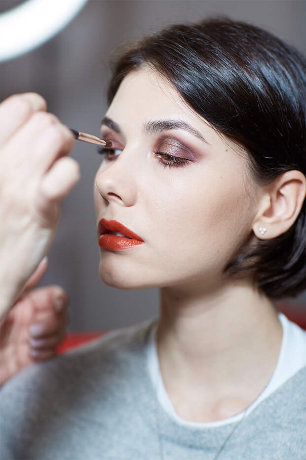 Накануне в столице прошел показ новой коллекции заслуженного московского дизайнера Игоря Чапурина. За бьюти-образ моделей традиционно отвечали визажисты Clarins. На этот раз стилисты решили не останавливаться на одном акценте, поэтому и два: глаза и губы. За глубокий взгляд отвечает насыщенный сияющий терракотовый оттенок теней, густо нанесенный на верхнее и нижнее веки.