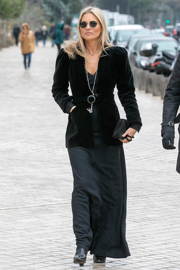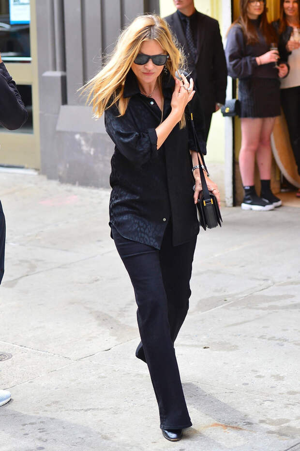 Черный - любимый цвет Кейт Мосс. Топ-модель выбирает его как для выходов в свет, так и для будничных прогулок. В образах total black мы видим ее в аэропортах, на званых ужинах, во время прогулок с друзьями и за обедами с дочерью Лилой. И, что интересно, при этом знаменитость никогда не выглядит скучно: интересные фасоны и фактуры делают каждый образ блондинки индивидуальным.