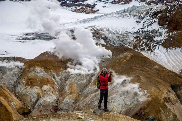 - Трекинг в кратер действующего вулкана Мутновский на Камчатке подойдет для тех, кто хочет побывать на другой планете. Фумаролы, серные выбросы, голубое озеро, снежные шапки, которые не таят даже летом.