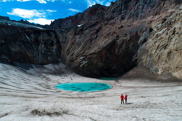 - Трекинг на кромку кратера вулкана Креницына на острове Онекотан (Курильские острова). Голубое озеро в кальдере старого вулкана, а в центре озера еще один вулкан. Сюда сложно и дорого добраться, но путешествие стоит каждого потраченного рубля.