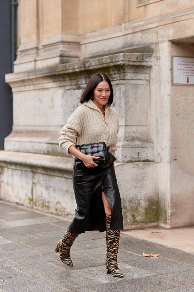 Здесь и плащи под рептилию, ботфорты всех мастей, капроновые колготки с яркими лодочками, свитеры с косами и двубортные пальто, без которых никак не обойтись в этом сезоне.