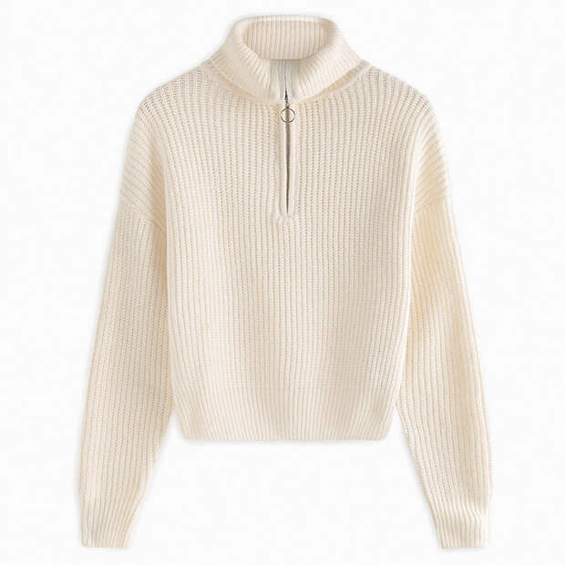 Про первый мы уже подробно рассказали, поэтому показываем, где купить не менее желанный свитер с молнией. Такая модель отлично впишется в любой гардероб. Ее преимущество в том, что она вроде базовая, то есть подойдет ко всему, но не такая уж и скучная за счет декоративной фурнитуры. Молния может быть по всей длине или только на вороте - выбирайте, какой вам больше по вкусу. Что касается стилизации, то носите такой свитер под футболку или рубашку, расстегнув молнию. А перед выходом на улицу застегните - высокий ворот будет держать форму и можно смело обойтись без шарфа. Образцовые варианты представили Jacquemus, The Row, Iro. Демократичные марки не остались в стороне от тренда, так что найти самый модный свитер зимы не составит труда. Тем более, что мы уже собрали самые лакомые варианты.