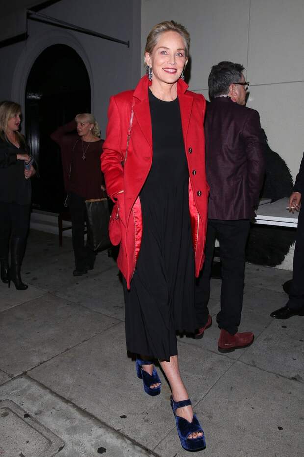 Если кто и может дать дать фору 56-летней Мег Райан, то только Шэрон Стоун, которая еще и на четыре года старше своей коллеги. Звезда "Основного инстинкта", которой никак не дашь 60 лет, отправилась на ужин с друзьями в Западном Голливуде в черном платье ультрамодной миди-длины, а сверху накинула эффектное алое пальто и миниатюрную сумку ему в тон.