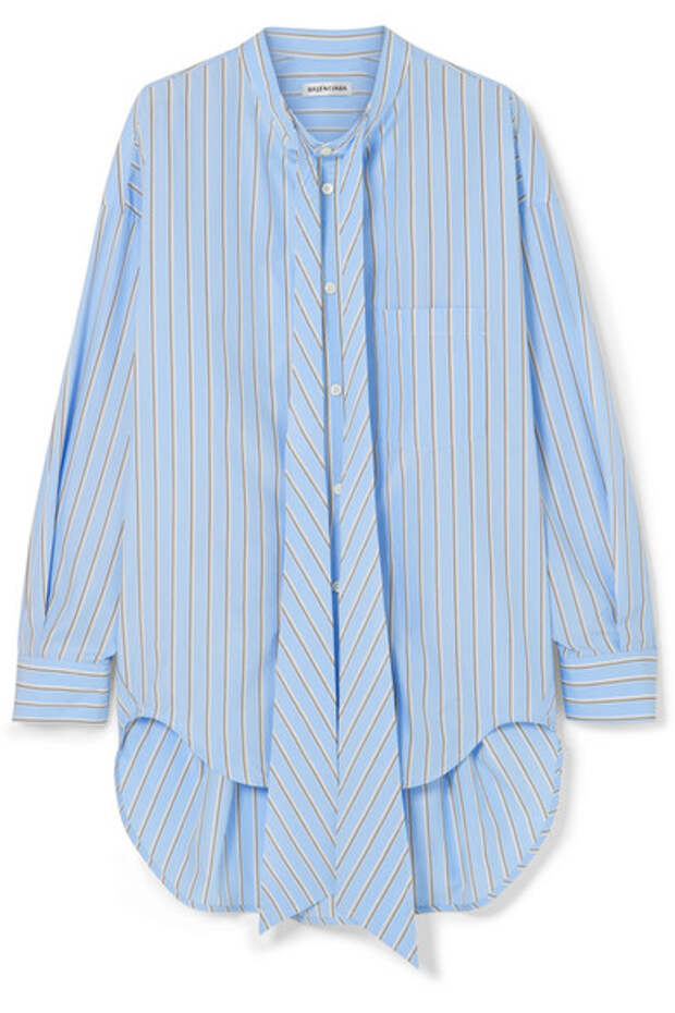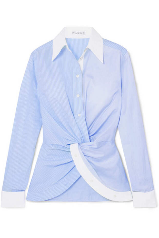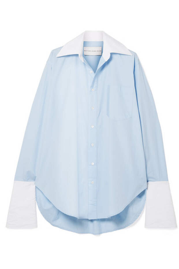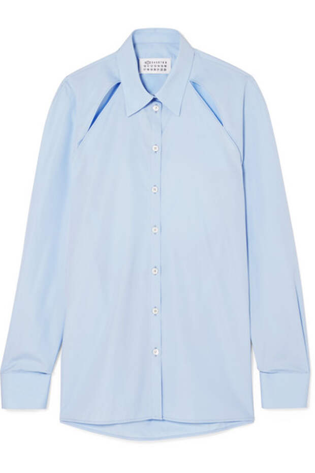 Сегодня испанская королева-консорт Летиция появилась на публике в лаконичном, но очень стильном образе, состоящем из «мужских» брюк с высокой талией и голубой рубашки, которая есть в гардеробе практически каждого офисного сотрудника. Берем идею на заметку и выбираем 9 рубашек необычного кроя (с разрезами, бантами, драпировками и контрастными манжетами), которые скрасят рабочие будни.