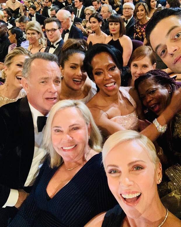 6 лет назад ведущая "Оскара" Эллен Дедженерес сделала селфи на церемонии, которое собрало больше всего ретвитов в истории. Посмотрим, удастся ли снимку Шарлиз повторить этот рекорд.