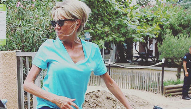 Французский президент Эммануэль Макрон и его 65-летняя жена сейчас отдыхают на юге Франции, в летней резиденции Форт-Брегансон, которая находится рядом с городом Борм-ле-Мимоза. Брижит, как оказалось, предпочитает активный отдых. Первая леди прокатилась на велосипеде по округе в бирюзовой футболке и микрошортах, продемонстрировав стройные загорелые ноги.