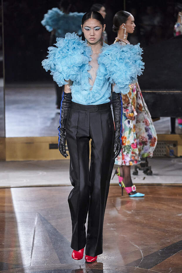 Наряды, вошедшие в коллекцию, скорее из разряда тех самых "мечт", к которым стремятся все искатели счастья, приезжающие в Нью-Йорк. Потому что с суровой реальностью, о которую мечты порой разбиваются, роскошные платья, смокинги, вечерние топы с бантами и перьевые боа имеют мало общего.Даже берясь за повседневный материал или вещь, Гурунг все равно переворачивает все так, чтобы и она превратилась в вариант на выход. Трикотажные обтягивающие платья, например, могут быть использованы как ежедневные, даже несмотря на неожиданное "окно" на груди. Но в сочетании с пестрой перьевой накидкой и броскими серьгами сразу переходят в разряд вещей на выход.
