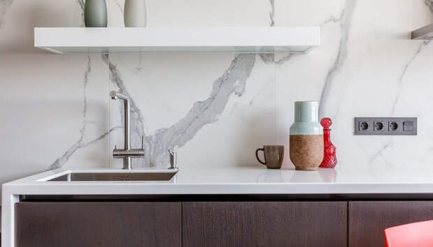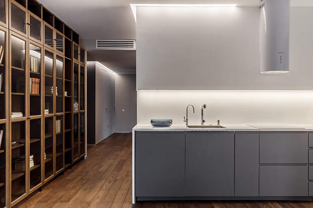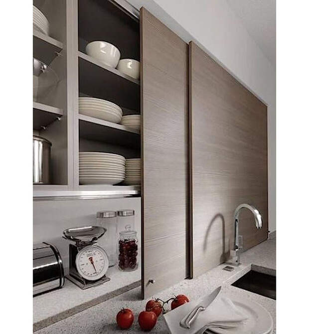 Практически на каждой кухне есть “фартук” — это часть стены между верхними и нижними шкафами, к которой обычно примыкают и варочная поверхность, и рабочая столешница. Если вам хочется рационально использовать каждый сантиметр на кухне, организуйте вместо “фартука” индивидуальную систему хранения. Для этого необходимо сделать специальную нишу — углубить на 20-30 сантиметров саму столешницу и спрятать за раздвижными дверцами полки или отсеки для хранения посуды, кухонных аксессуаров и негабаритной техники. Визуально это будет выглядеть как стильный и аккуратный “фартук”, а внутри — шкаф. Если такая ниша в квартире уже есть или сейчас вы занимаетесь монтажом перегородок, рекомендуем создать скрытые системы хранения, которые добавят кухне функциональности и чистоты.