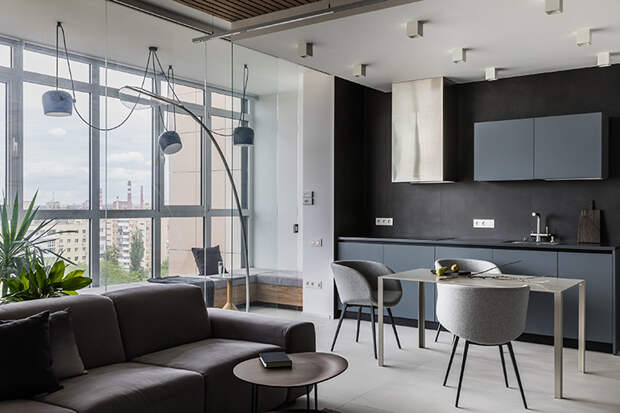 Крашенный мдф, шпон, фанера, штукатурка, керамогранит — удачный выбор для минималистичной кухни. Приглушенные матовые фасады кухонной мебели универсальны, они выглядят стильно и современно и при этом создают особую атмосферу уюта и комфорта. Например, для одного из клиентов мы совместили благородные матовые поверхности и скрытую фурнитуру. Дверцы со скрытыми ручками или открывающиеся при нажатии удобны в эксплуатации, но если вы предпочитаете не прятать фурнитуру, выбирайте максимально качественную, выполненную в строгом и лаконичном стиле.