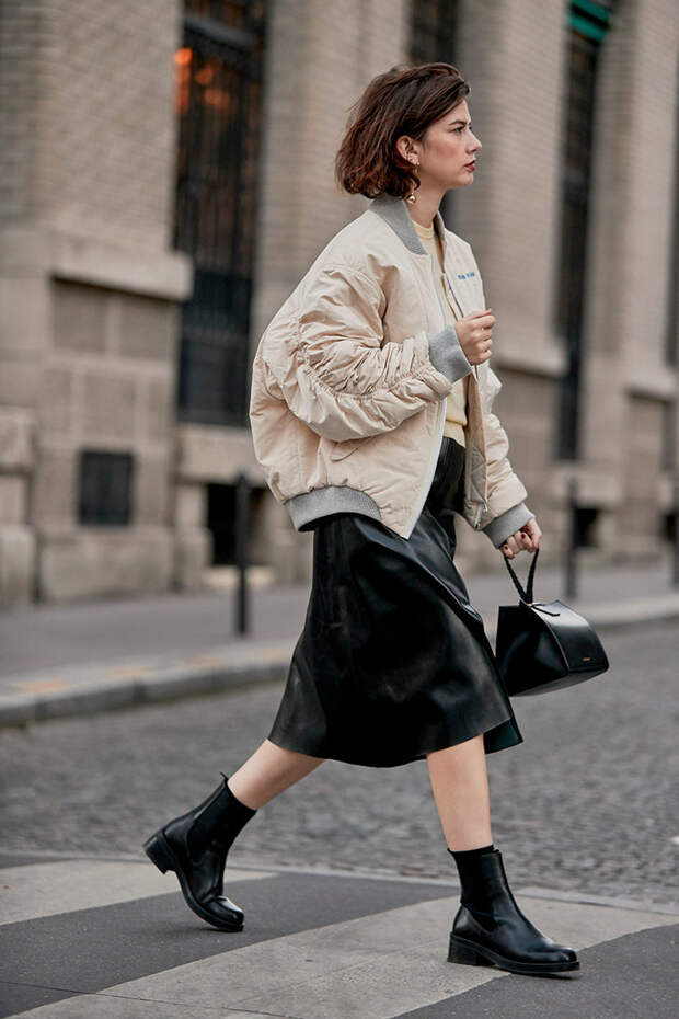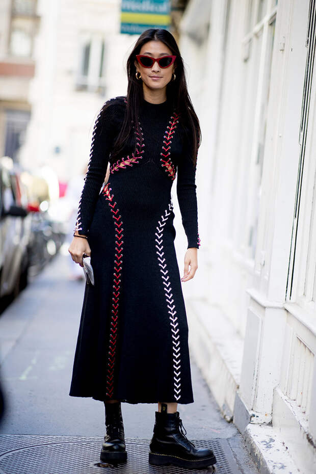Стритстайлеры любят носить такую обувь с платьями, сочетая ее даже с трикотажными или летящими моделями. Также они подходят к кожаным юбкам миди, кюлотам, любым джинсам и кожаным штанам. Выбирайте легкие ботинки (чем тяжелее, тем быстрее будет уставать нога), сделанные из прочных непромокаемых материалов.