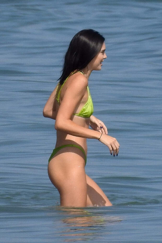 Ким в последнее время не носит ничего, кроме неона, поэтому ее бикини было чуть ярче, чем у младшей сестры. Видимо, Кендалл еще не готова к флуоресцентным цветам.